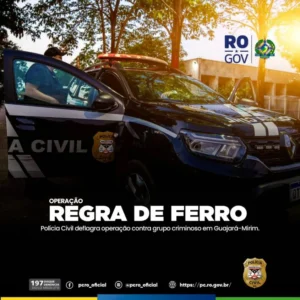 A Polícia Civil do Estado de Rondônia reafirma seu compromisso com a repressão qualificada às organizações criminosas, por meio de ações integradas e contínuas em todo o território estadual. A Operação “Regra de Ferro” está inserida nesse contexto estratégico de enfrentamento ao crime organizado, especialmente nas regiões de fronteira. As investigações permanecem sob sigilo, podendo novas informações ser divulgadas oportunamente, conforme o avanço dos trabalhos policiais.