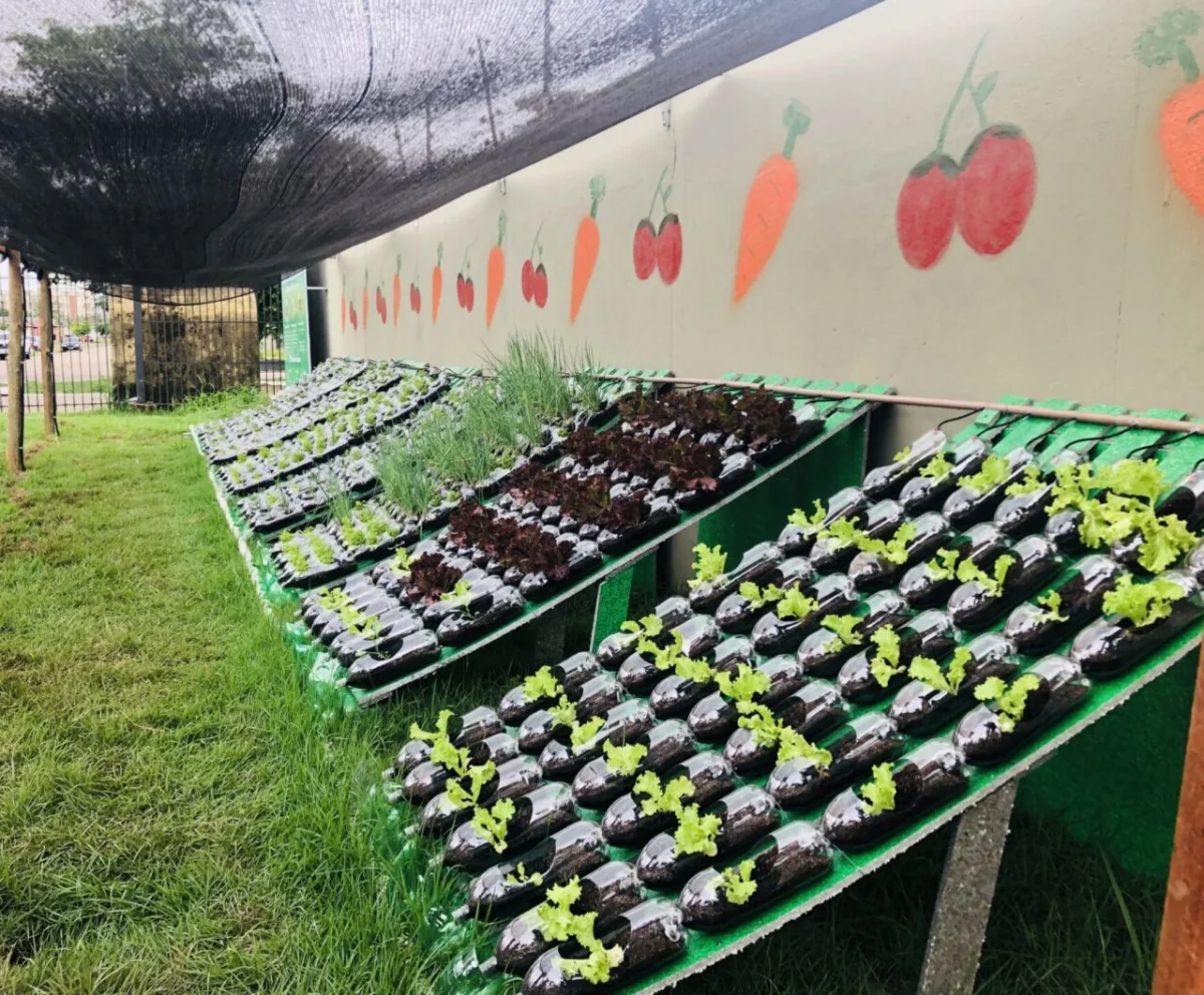 O projeto de hortas hidropônicas, que são construídas de forma sustentável, tem como objetivo trabalhar a segurança alimentar, visando produzir alimentos saudáveis e nutritivos em qualquer lugar, pois, não se faz necessário o uso do solo para o plantio.