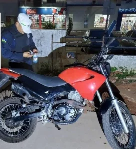 Em verificação posterior, constatou-se que a motocicleta utilizada possuía sinais de adulteração, com placa divergente da original, configurando crime previsto no artigo 311 do Código Penal. O veículo foi apreendido e apresentado à autoridade policial para as medidas cabíveis.