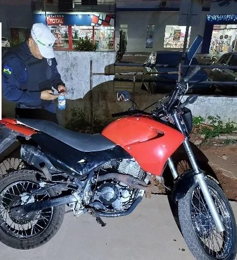 Em verificação posterior, constatou-se que a motocicleta utilizada possuía sinais de adulteração, com placa divergente da original, configurando crime previsto no artigo 311 do Código Penal. O veículo foi apreendido e apresentado à autoridade policial para as medidas cabíveis.