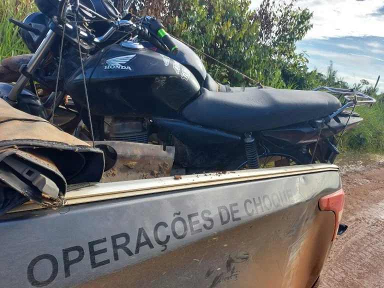 Durante o deslocamento pela estrada rural, os policiais avistaram dois indivíduos conduzindo motocicletas que, ao perceberem a presença das equipes, demonstraram comportamento suspeito e tentaram fugir do local. Diante da situação, foi iniciado acompanhamento tático, que resultou na abordagem dos suspeitos pouco tempo depois.