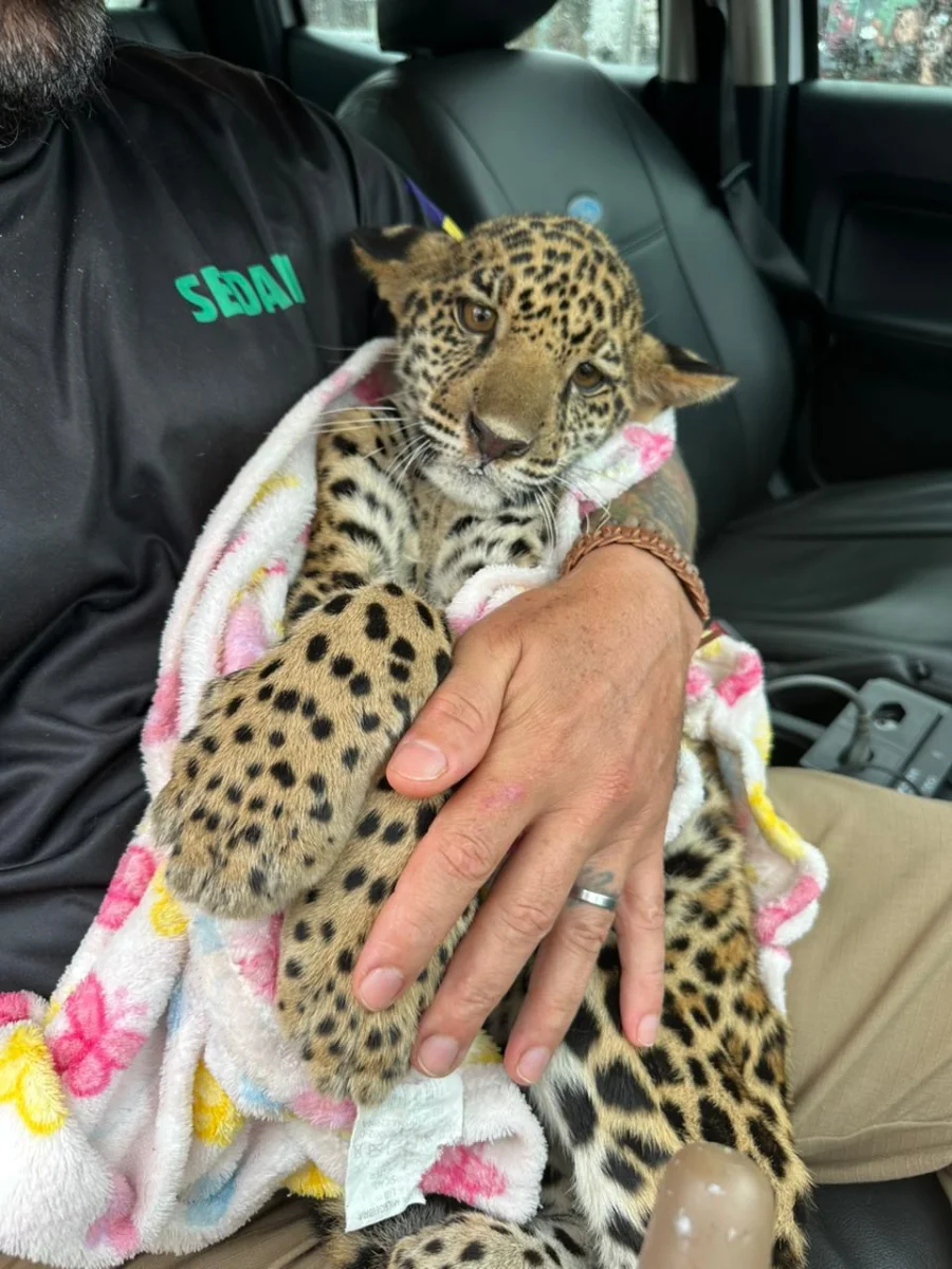 No dia 11 de fevereiro de 2026, um filhote de onça-pintada foi encontrado debilitado na zona rural de Machadinho do Oeste/RO. Após o resgate por uma guarnição do Batalhão de Polícia Ambiental – BPA, o animal recebeu atendimento veterinário inicial na Clínica Veterinária Saúde Animal, onde foi avaliado e estabilizado por profissional habilitado.