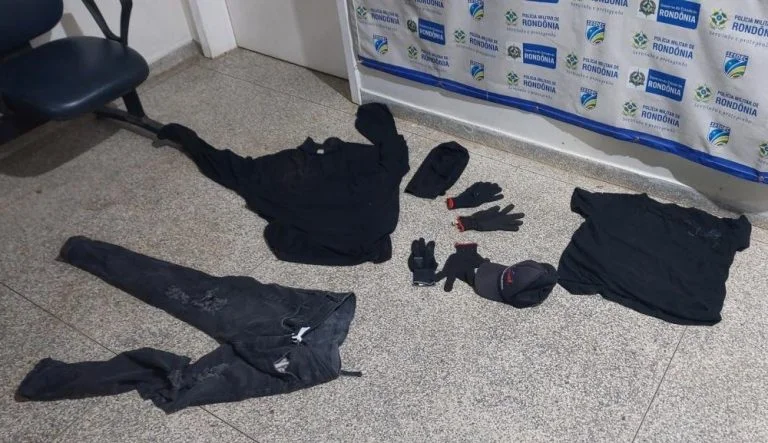Dando continuidade às buscas pelos suspeitos e pela carga, a guarnição identificou, no Setor Industrial, dois indivíduos com características compatíveis às repassadas. A fundada suspeita motivou a abordagem, momento em que foi constatado que ambos haviam saído recentemente de uma residência próxima. Com percepção técnica e atenção aos detalhes, os policiais realizaram averiguação no imóvel, onde localizaram outros três suspeitos. No local, foram encontradas vestimentas semelhantes às utilizadas no crime, além de uma maleta de ferramentas reconhecida pela vítima como sendo de sua propriedade, reforçando os indícios de envolvimento dos abordados.
