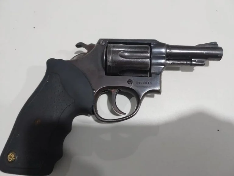 Durante buscas na residência, foi localizado um revólver Taurus calibre .38, nº 1400016, desmuniciado. O suspeito assumiu ser o proprietário da arma. Uma jaqueta preta com capuz também foi encontrada abandonada nas proximidades da rua Jerusalém. A motocicleta de placa NDD-4A99, supostamente utilizada na fuga, foi apresentada na Delegacia juntamente com as chaves.
