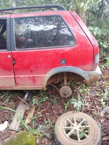 Diante da situação policiais militares realizaram diligências e obtiveram informações que o veículo estava escondido em uma mata na área rural, próximo a uma granja.
