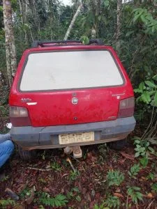 Diante da situação, os policiais realizaram diligências e obtiveram informações de que o veículo estava escondido em uma mata na área rural, próximo a uma granja.