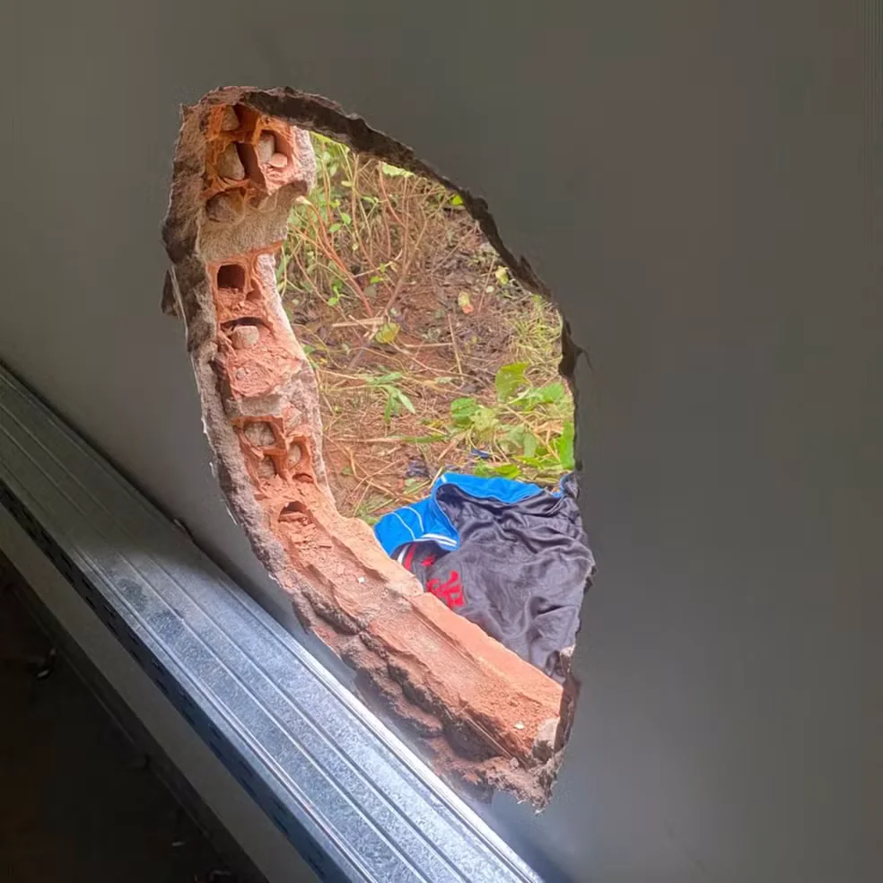 Segundo a polícia, os três suspeitos invadiram a agência e fizeram um buraco na parede de uma sala que dá acesso ao cofre. Moradores perceberam a movimentação estranha e chamaram a polícia.
